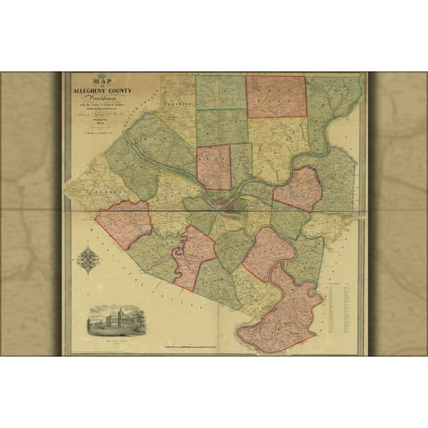 24"x36" Gallery Poster, Map of Allegheny County, Pennsylvania 1851 ...