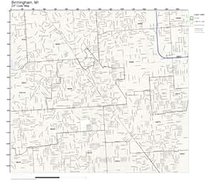 Amazon.com: ZIP Code Wall Map of Birmingham, MI ZIP Code Map Laminated ...