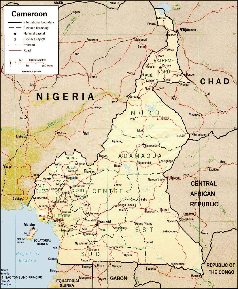 Detailed political map of Cameroon with relief | Cameroon | Africa ...