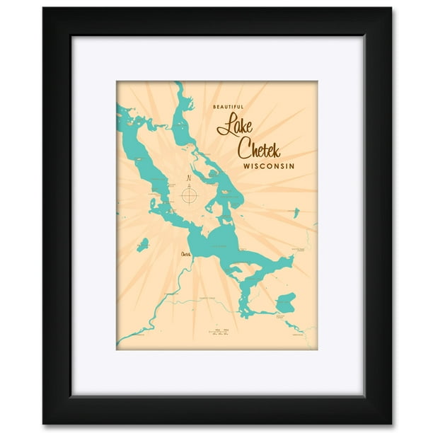 Lake Chetek Wisconsin Map Framed & Matted Art Print by Lakebound ...