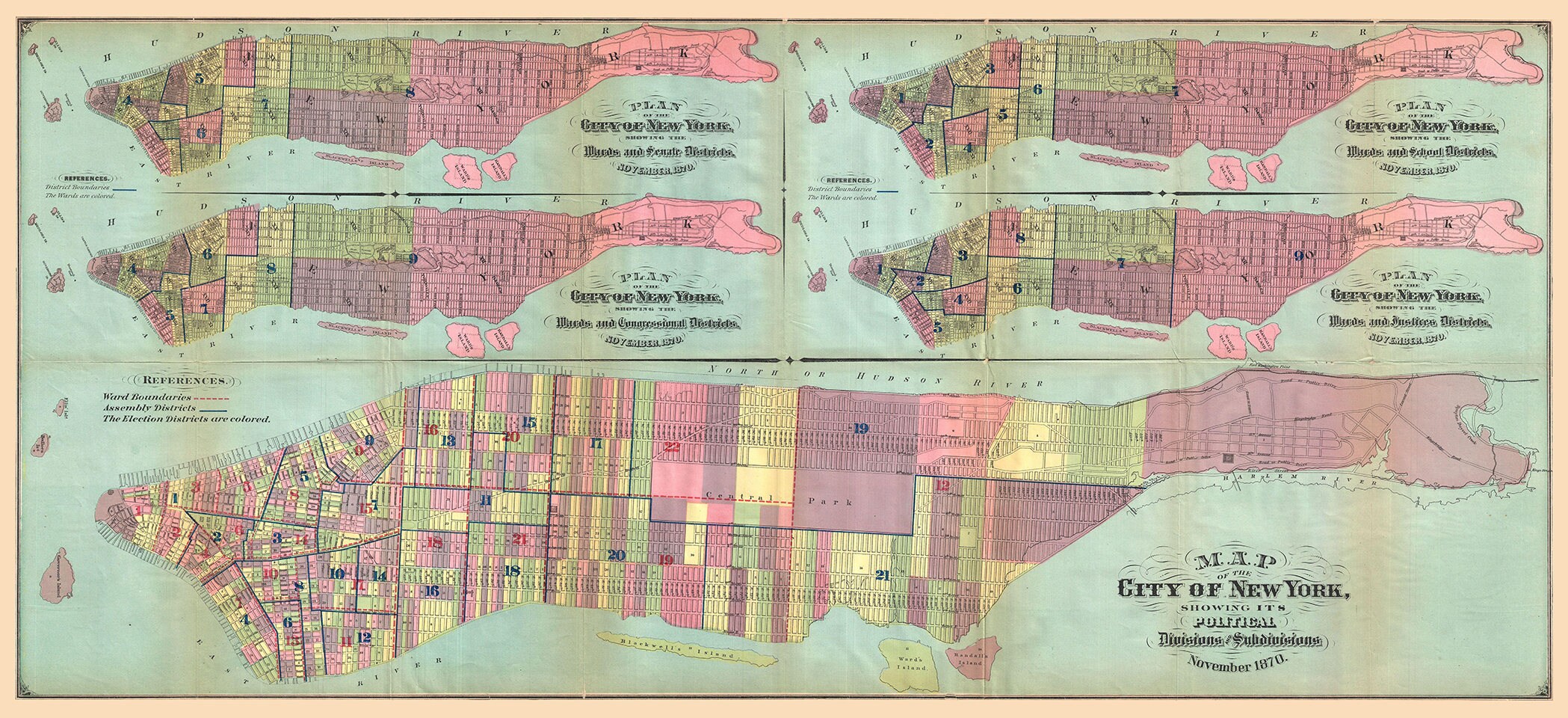 Vintage antique Map Print of the City of New York Showing Political ...